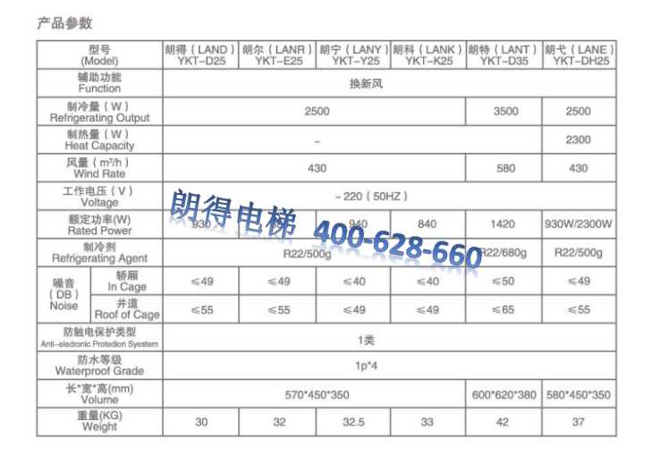 朗得电梯专用空调: