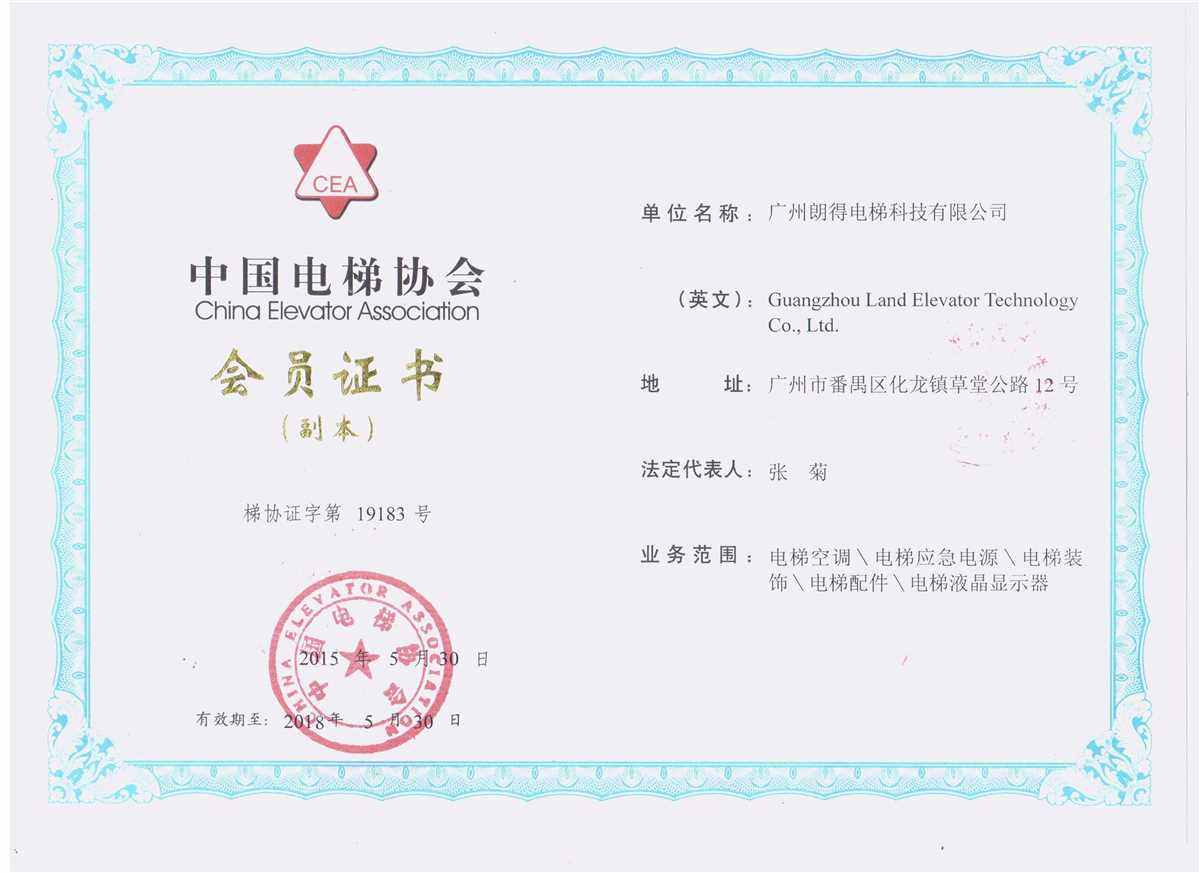 电梯协会会员证书
